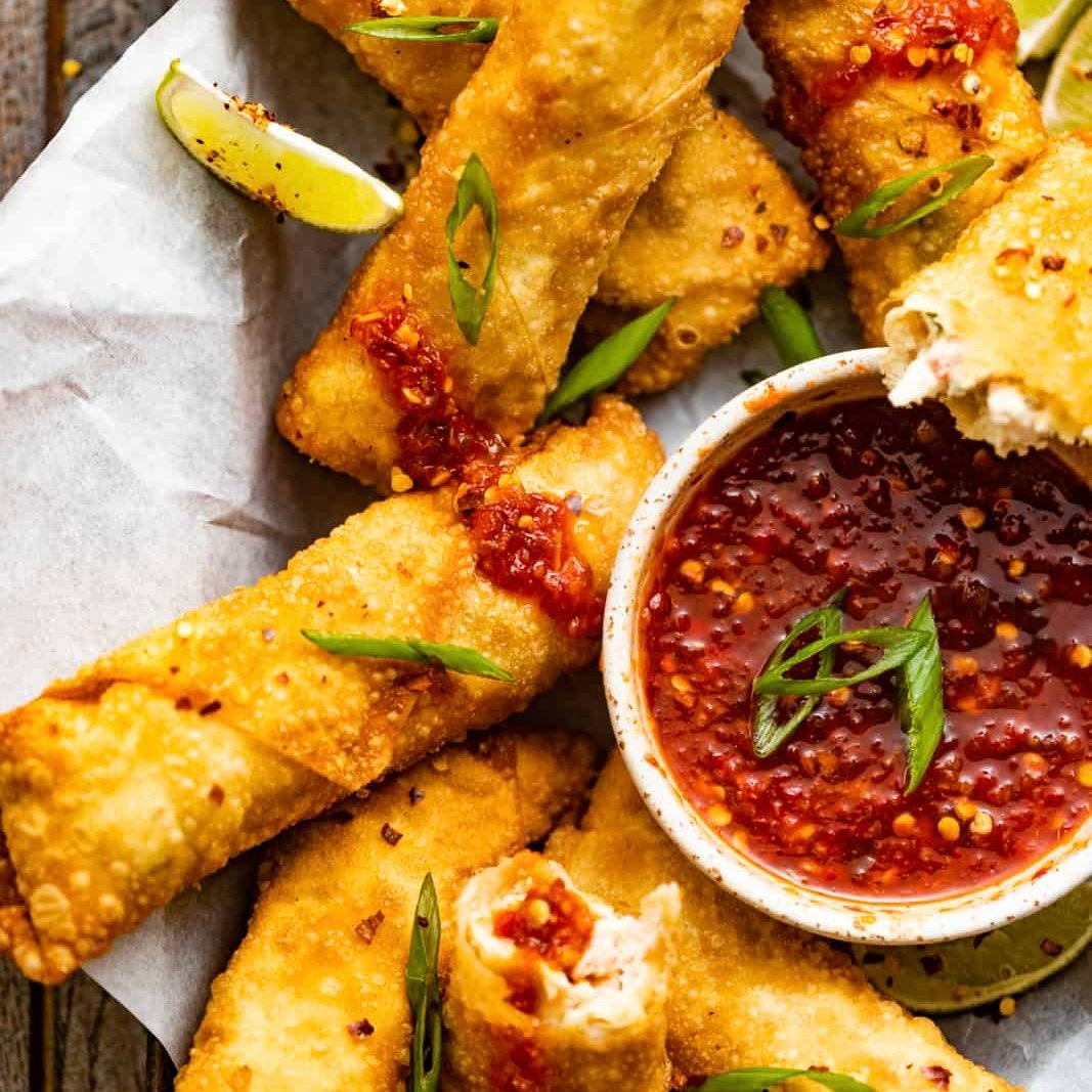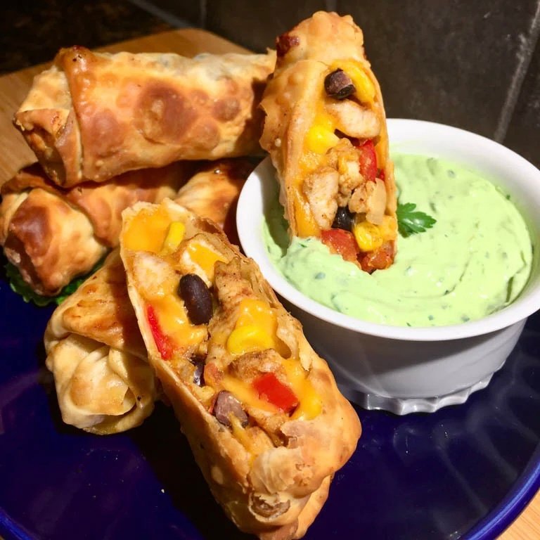 Large, crispy spring rolls packed with Cajun-seasoned chicken, melted cheddar cheese, sweet red and green peppers, green onions, corn, and hearty black-eyed beans. Boldly seasoned and bursting with Southern-inspired flavor in every bite
