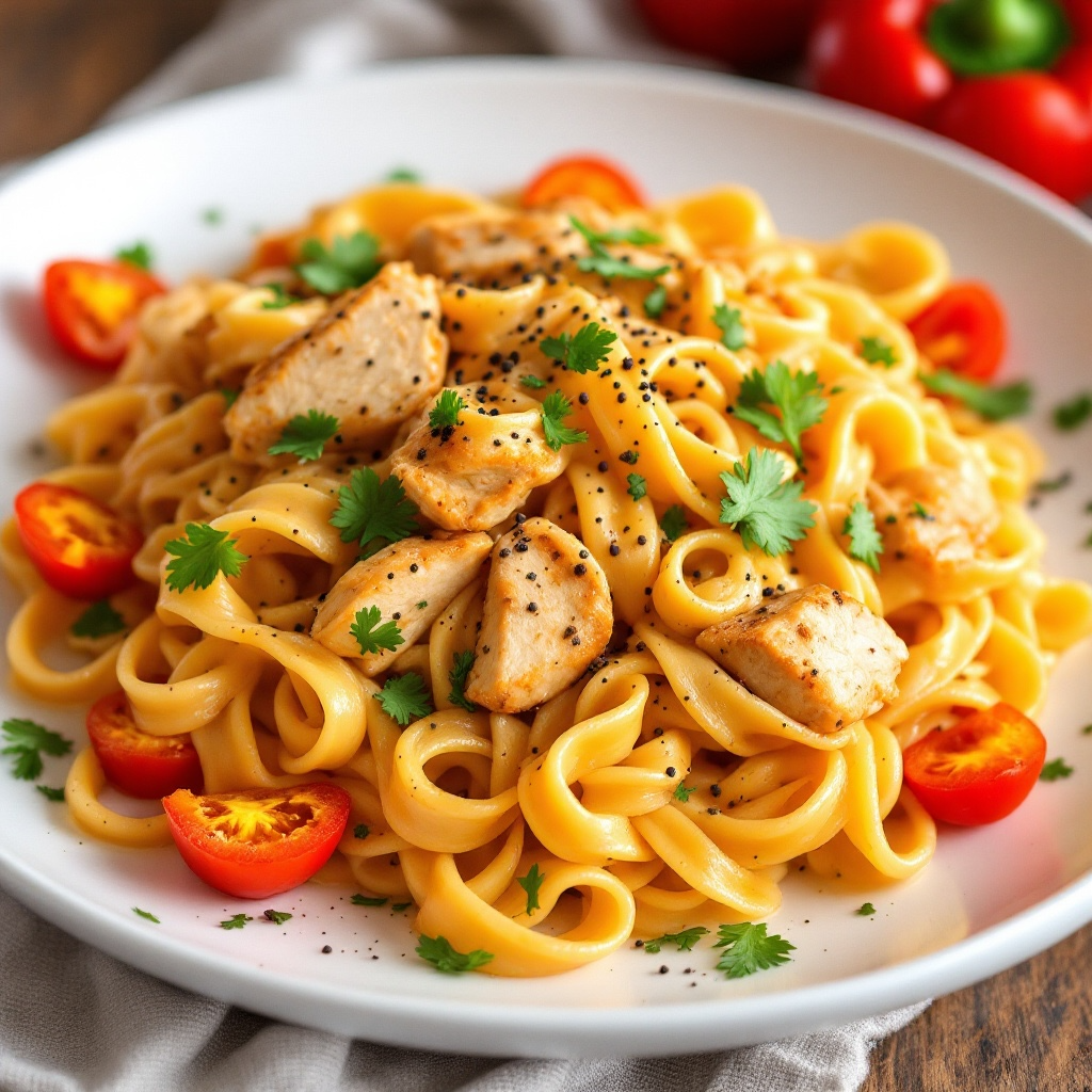 Tender grilled chicken breast, seasoned with bold Cajun spices, served over a bed of al dente pasta tossed in a rich, creamy garlic Parmesan sauce. Finished with sautéed bell peppers, onions, and a touch of heat for a Southern kick. Garnished with fresh parsley and shaved Parmesan.