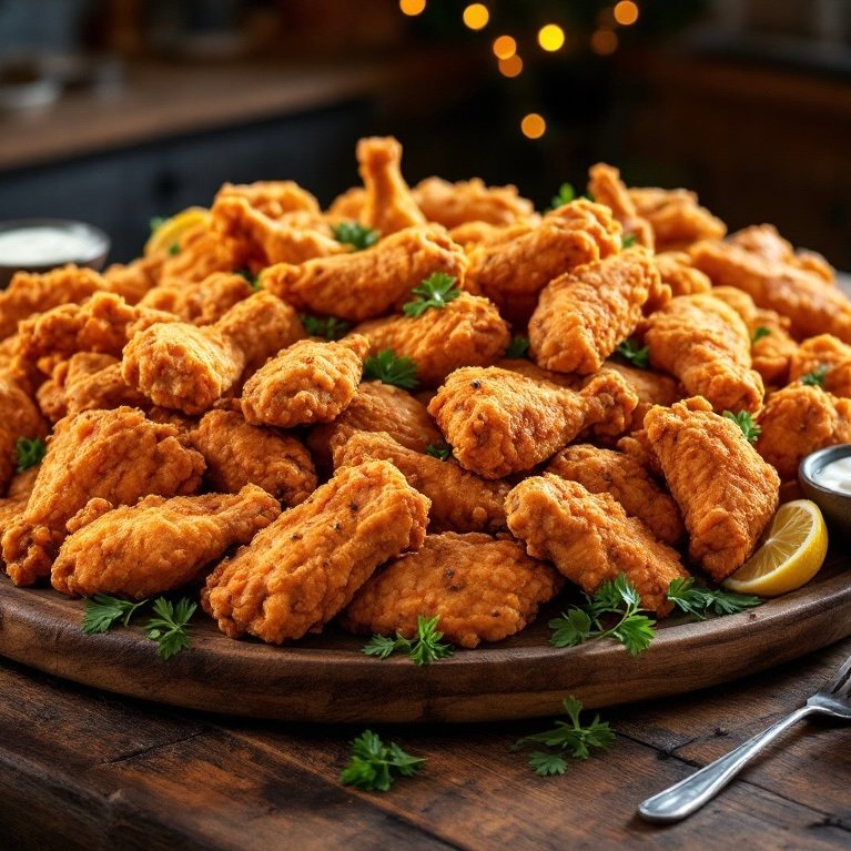 golden-fried chicken—perfectly seasoned and cooked to juicy perfection. Served with a generous helping of seasoned fries and a side of creamy coleslaw for a classic, satisfying meal.